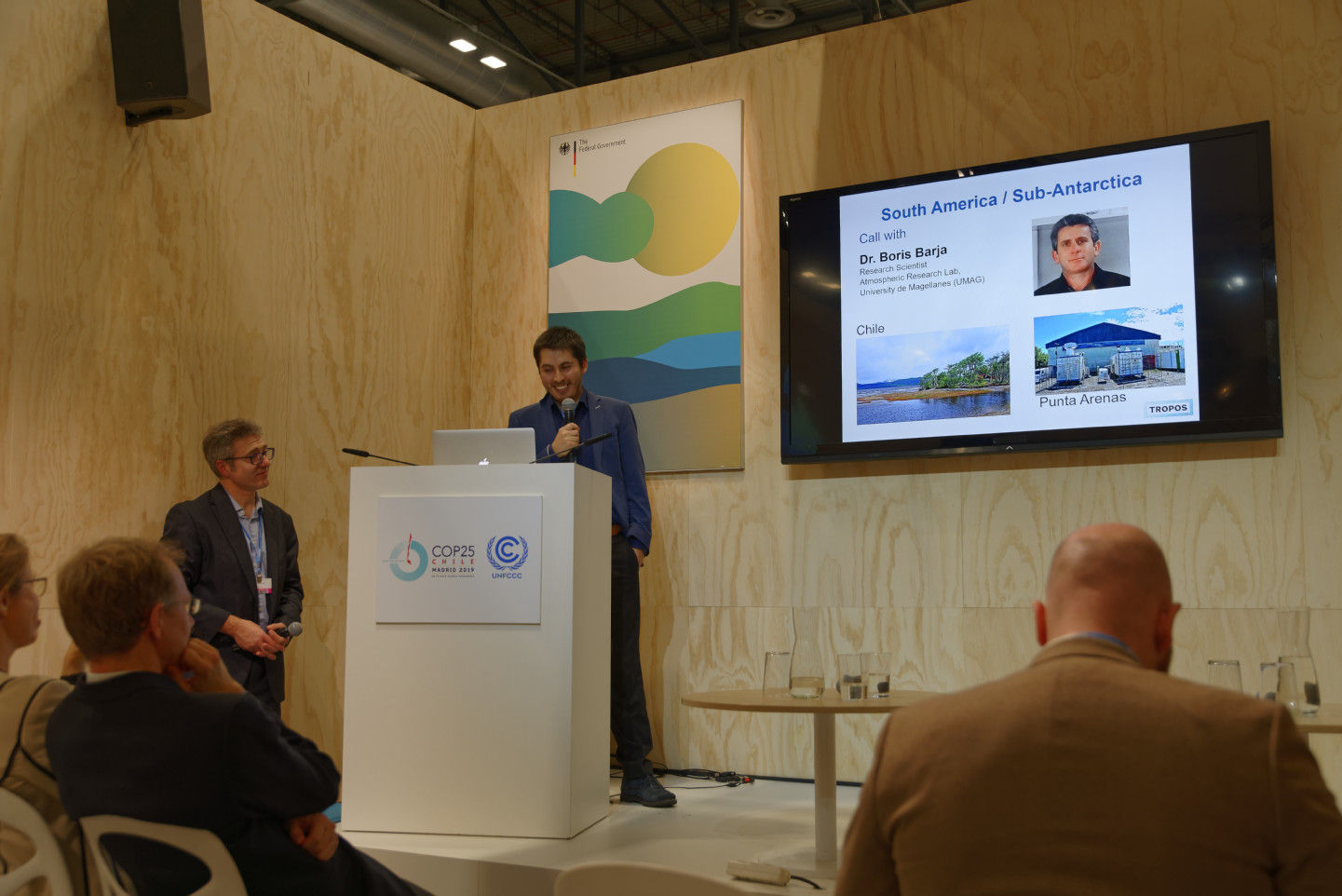 Bei dem Side Event auf der Klimakonferenz in Madrid wurden die zugrundeliegenden physikalischen Prozesse erklärt. Expertinnen und Experten, die mittels Live-Übertragungen zu Messstationen an Schlüsselorten auf verschiedenen Kontinenten und zum Forschungsschiff „Polarstern" in der Arktis zugeschaltet waren, stellten den Einfluss sich ändernder Luftverschmutzung auf das Wetter vor Ort und den globalen Klimawandel vor.