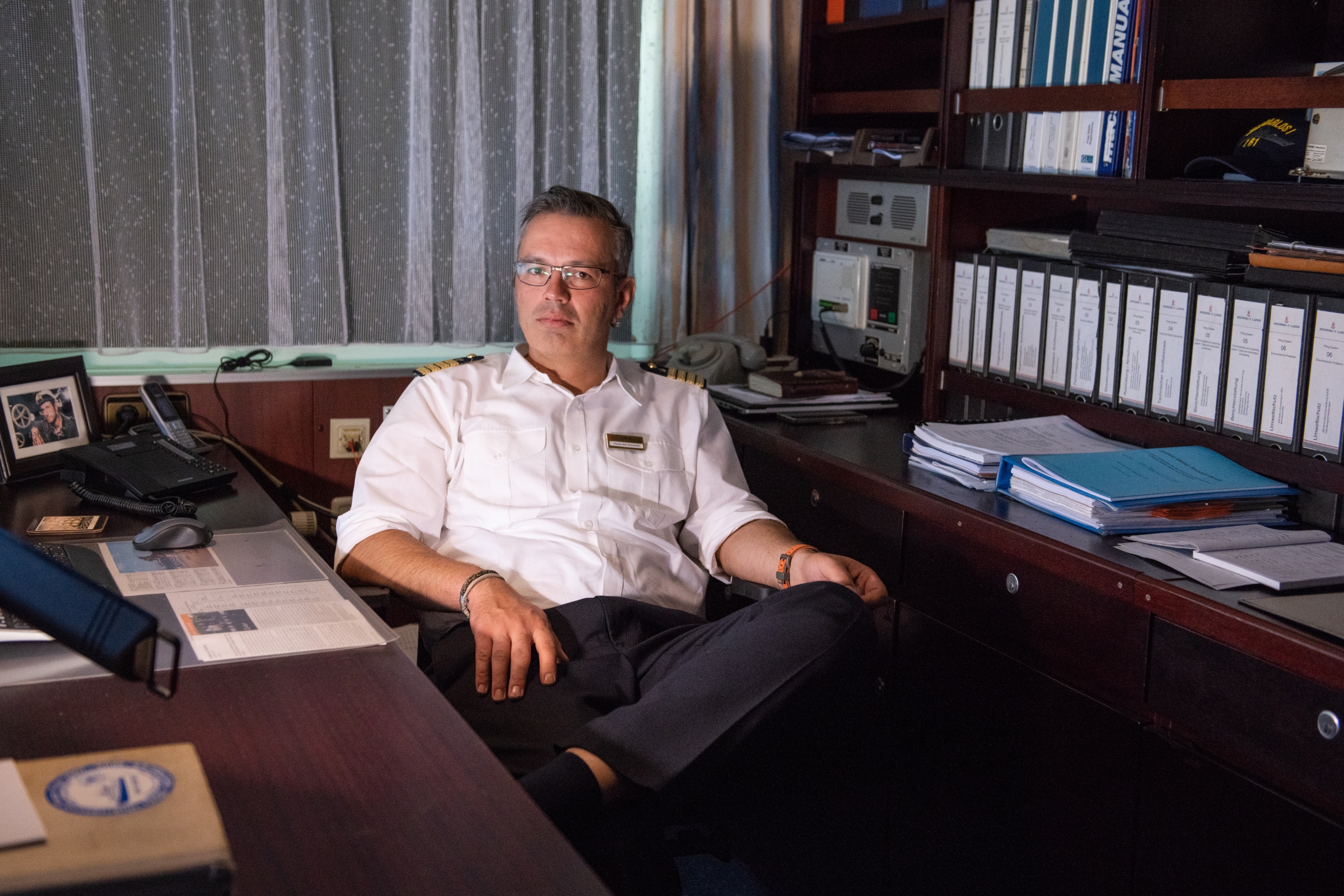 Das Anlegemanöver ist einer der vielen Momente, in denen Erfahrung und Navigationsgeschick des Kapitäns gefragt sind. Thomas Wunderlich hat nun das Kommando übernommen. „Wir konnten die ersten Tage gut und zügig Wegstrecke zurücklegen. Windrichtung und Sicht haben uns dabei unterstützt", berichtet Thomas Wunderlich. Ab 82° Nord habe sich die Dynamik des Eises erhöht. Zwischenzeitlich war die POLARSTERN aufgrund von Presseis zum Stillstand gezwungen und musste zwei Tage die Maschinen abstellen, um wertvollen Brennstoff zu sparen.