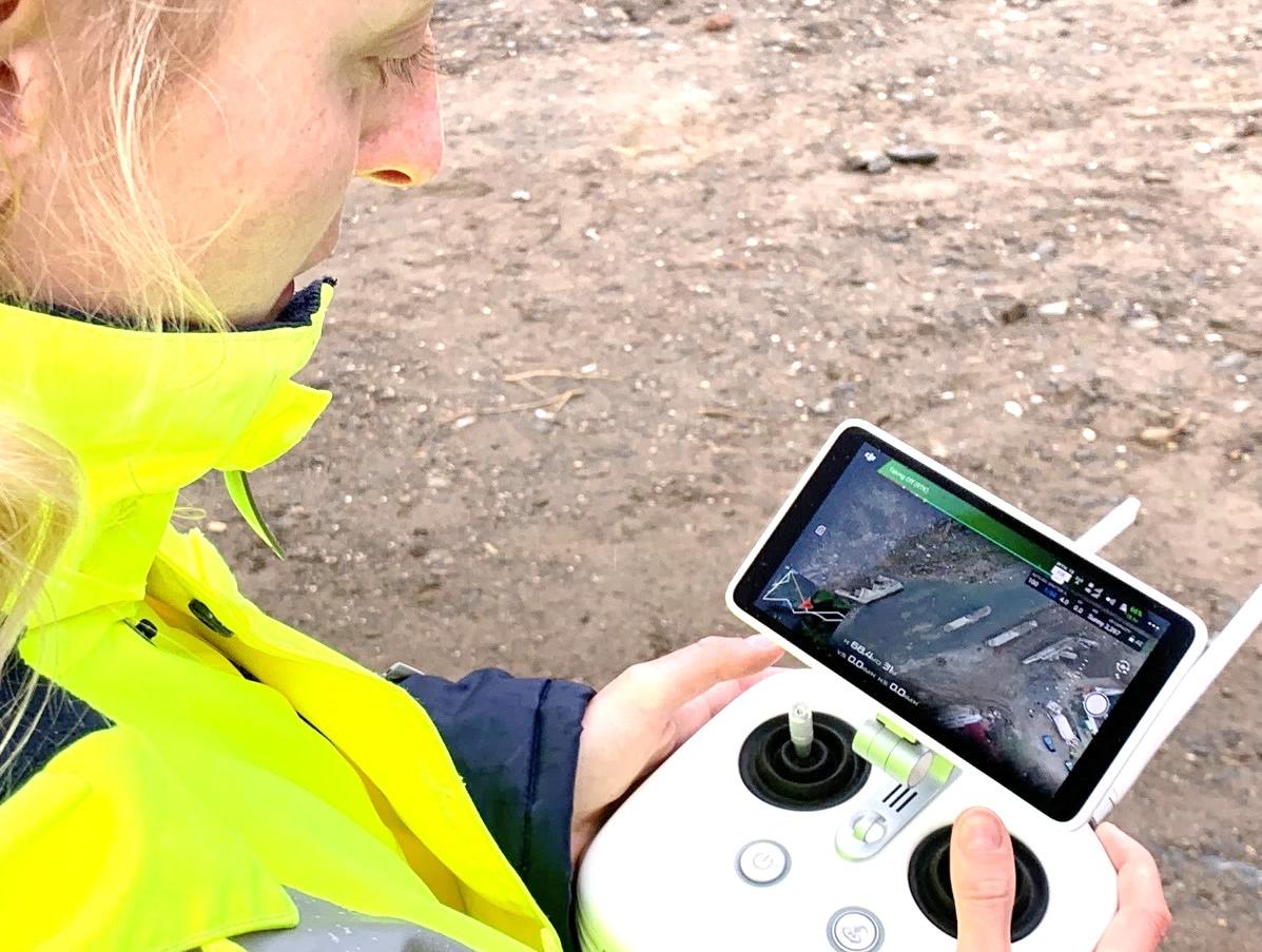 Ein Piepton ertönt: Die Drohne sendet von oben ein Signal an das Steuerungsgerät. „Jetzt hat die Drohne alle Daten in dem Gebiet aufgezeichnet, das ich zuvor bestimmt habe", erläutert Lisa Burghardt. Die gelernte Umweltingenieurin setzt zur Landung der Drohne an. Behutsam steuert sie diese mit kleinen Hebeln; wenige Meter vor ihr kommt die Drohne zum Halt.