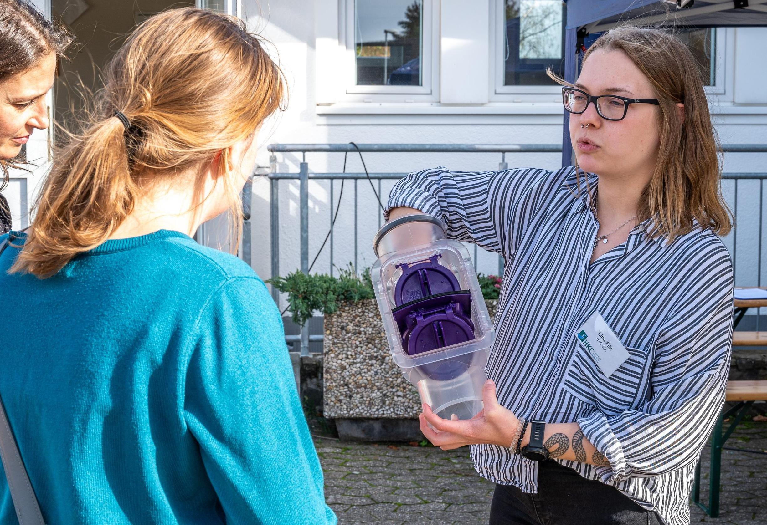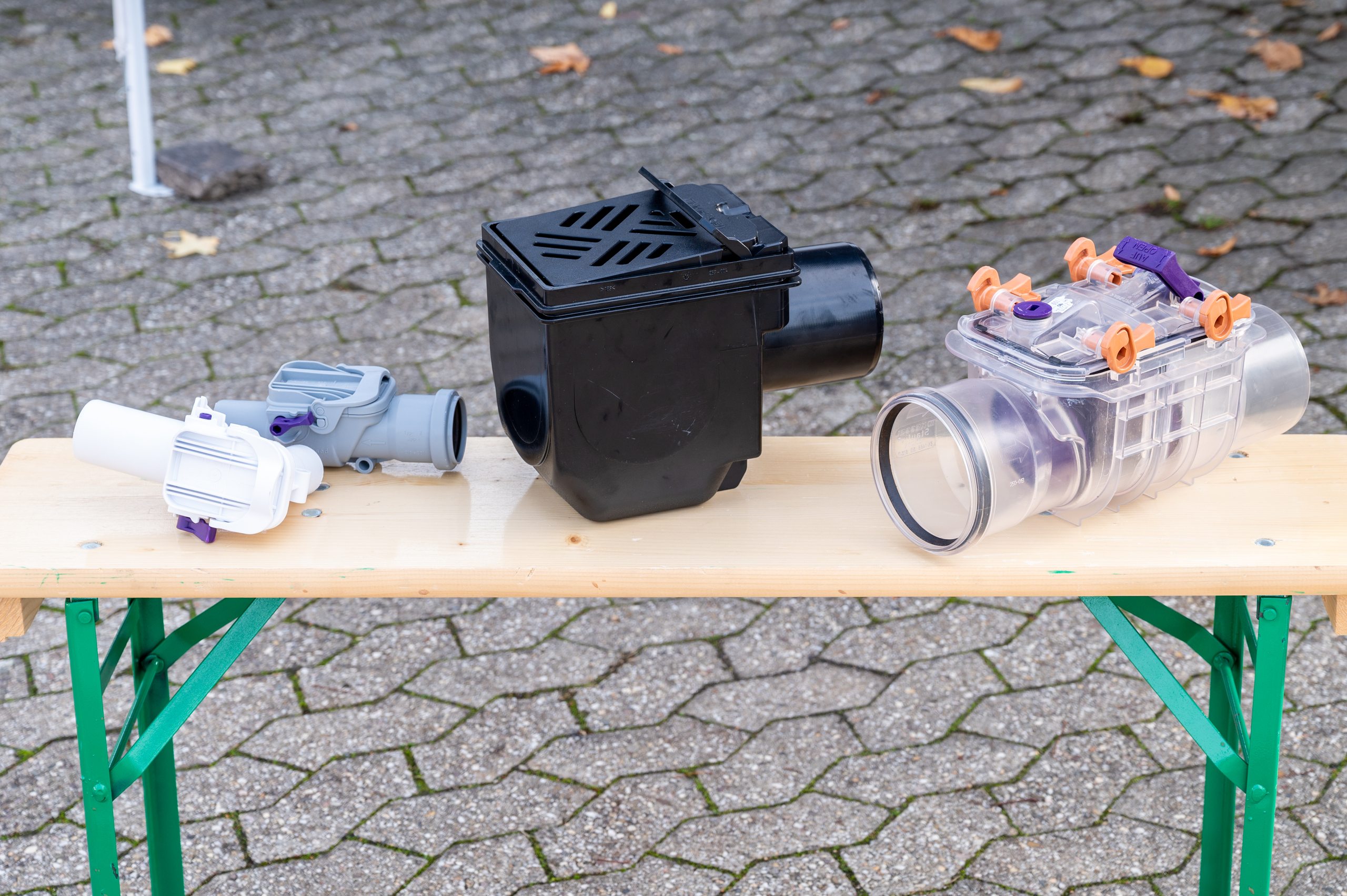Flutschotts, Rückstauklappen, Sandsäcke – die Beratung von Hans-Theodor Arenz und Lina Fitz ist nicht nur theoretisch: Am Infostand können sich die Interessierten anhand mehrerer Exponate und Anschauungsmaterialien ein genaues Bild davon machen, welche Schutzmöglichkeiten zur Eigenvorsorge auf dem Markt zur Verfügung stehen und möglicherweise für die eigenen Bedürfnisse geeignet sein könnten.