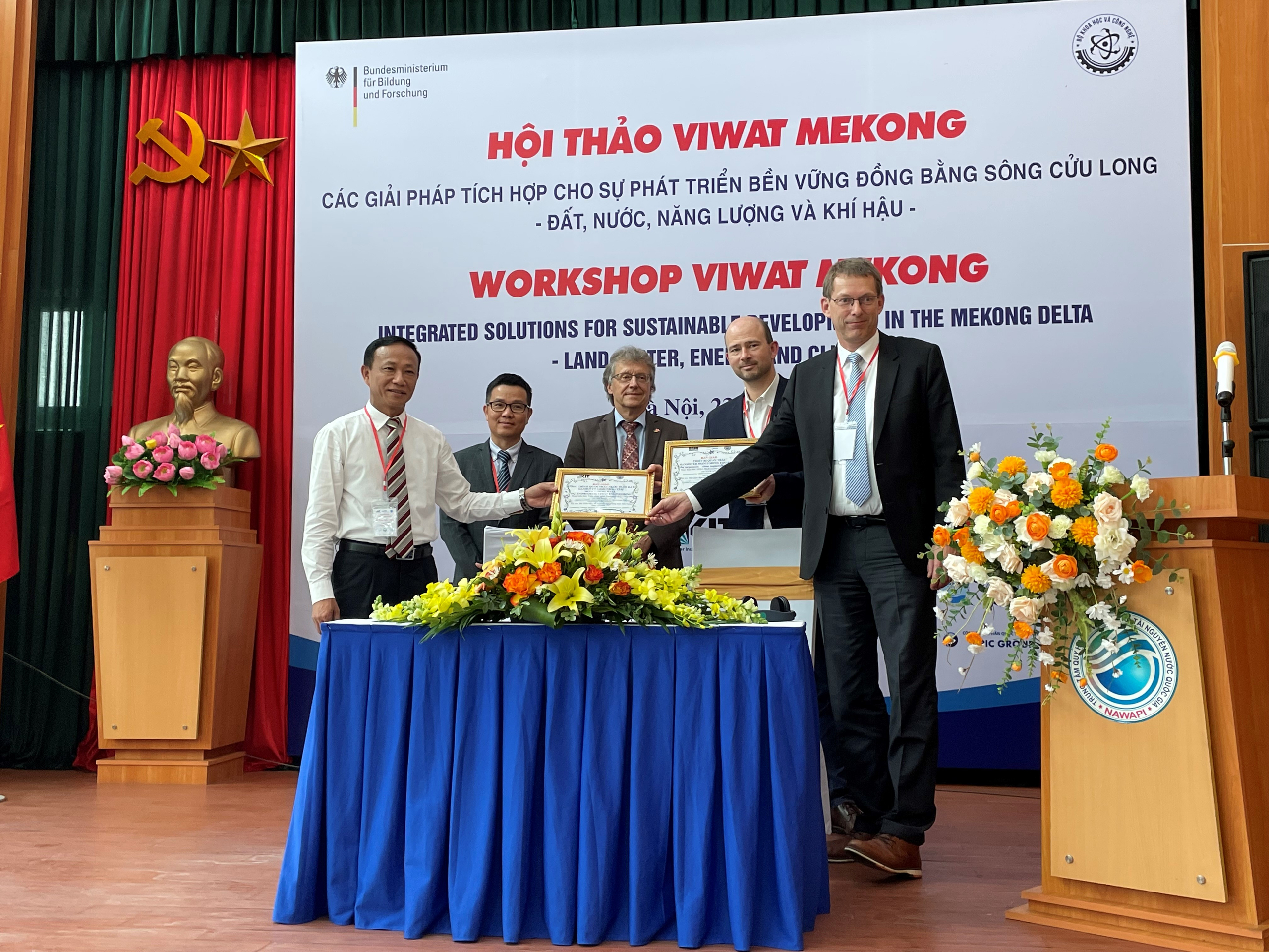 Angesichts dieses erheblichen Problemdrucks hat die vietnamesische Regierung mit der nachhaltigen Neugestaltung der Wasser- und Landnutzung im Mekong-Delta begonnen. Seit 2018 arbeiten daran auch deutsche Forschergruppen unter Leitung des Karlsruher Instituts für Technologie (KIT), der Ruhr-Universität Bochum (RUB) und der Universität Witten/Herdecke (IEEM) zusammen mit Kolleginnen und Kollegen aus Vietnam im interdisziplinären Verbundprojekt ViWaT-Mekong. Sie entwickeln Strategien und Technologien für den Küstenschutz, die regionale Wasser- und Landnutzungsplanung sowie ein nachhaltiges Wassermanagement.