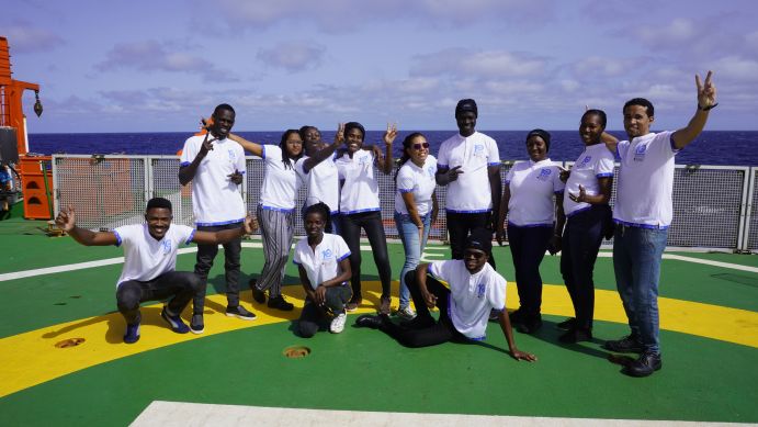 An der Premiere der WASCAL-Floating University 2022 nahmen 14 Master-Studierende an Bord des Forschungsschiffs Maria S. Merian teil.