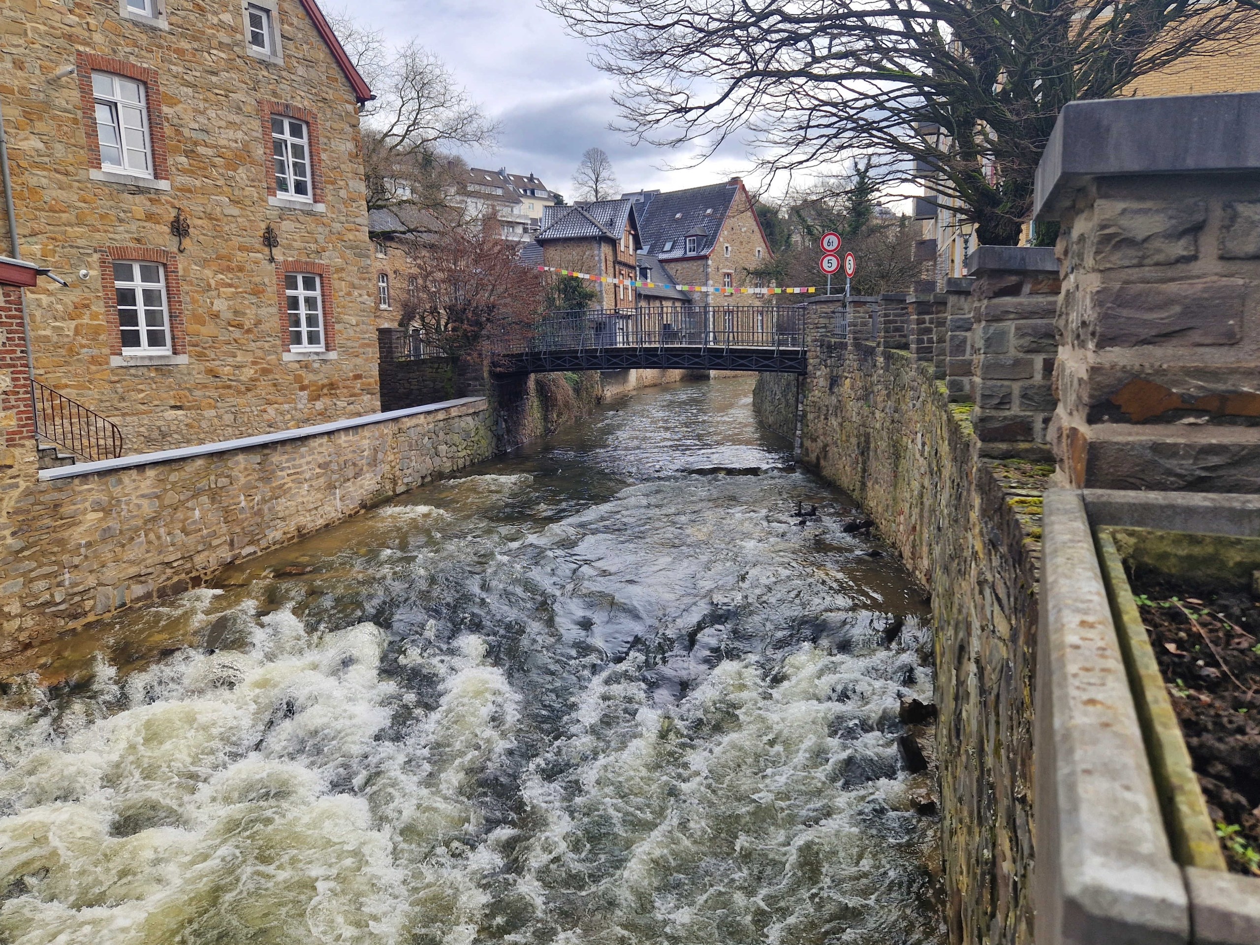 Ein sanftes Rauschen. Mehr ist nicht zu hören, während sich die Vicht ihren Weg flussabwärts durch die Innenstadt von Stolberg bahnt. Heute ist der Wasserstandspegel im „Normalbereich". Im Juli 2021 wurde der Mittelgebirgsbach Vicht wie auch viele andere kleine Flüsse und Bäche in Nordrhein-Westfalen und Rheinland-Pfalz zu reißenden Gewässern.