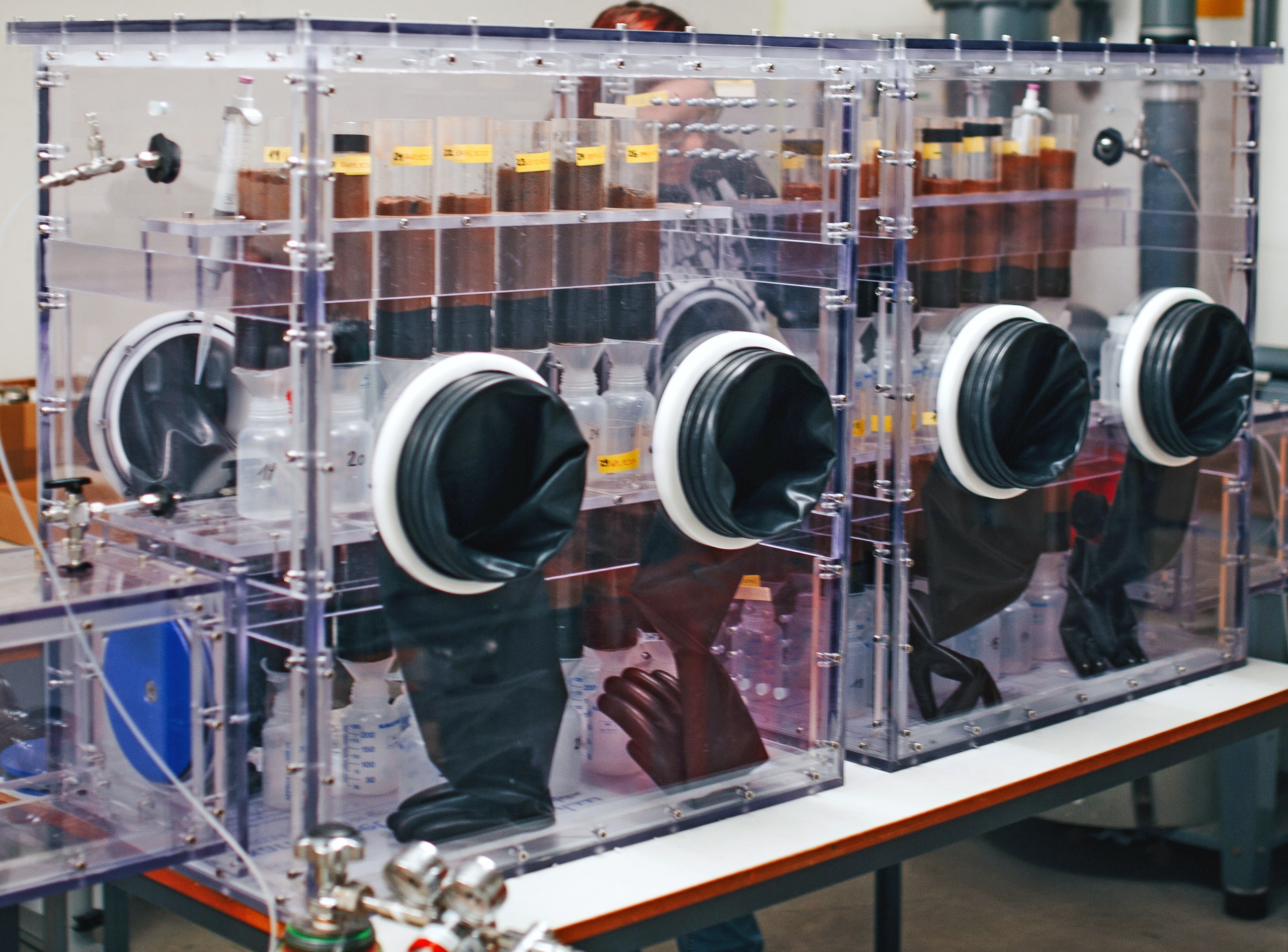Ein weiteres Projekt kombiniert bereits zwei erprobte CDR-Methoden und untersucht, wie diese optimal verknüpft werden können: Bei der einen Methode wird CO2 aus der Atmosphäre in Pflanzenkohle gebunden, bei der anderen wird durch die Verwitterung von Gestein Kohlendioxid gebunden. Durch die Kombination beider Methoden will das CDRterra-Projekt PyMiCCS die CO2-Bindung insgesamt erhöhen und gleichzeitig die Qualität landwirtschaftlicher Böden verbessern. Denn: Das zermahlene, CO2-bindende Gesteinsmehl kann als Dünger für landwirtschaftliche Böden genutzt werden. Ein Vorteil von Pflanzenkohle ist, dass sie zum Beispiel zur Steigerung des Wasserhaltevermögens im Boden beiträgt. Derzeit forscht das PyMiCCS-Projektteam an verschiedenen „Säulenversuchen": In Säulen werden unterschiedliche Kombinationen von Bodenmaterial, Gesteinsmehl, Pflanzenkohle und PyMiCCS-Produkten (Biomasse und Gesteinsmehl gemischt und dann pyrolysiert) untersucht. So können die Forschenden vergleichen, wie sich der Kohlenstoffgehalt in den Böden verändert. Das Experiment startet mit einem tropischen Boden, der sehr nährstoffarm ist und von der Applikation von Pflanzenkohle und/oder Gesteinsmehl vermutlich am meisten profitieren kann (siehe Foto). Später wiederholen die PyMiCCS-Forschenden diese Experimente mit einem lehmigen und einem sandigen Boden, die in Deutschland weit verbreitet sind.