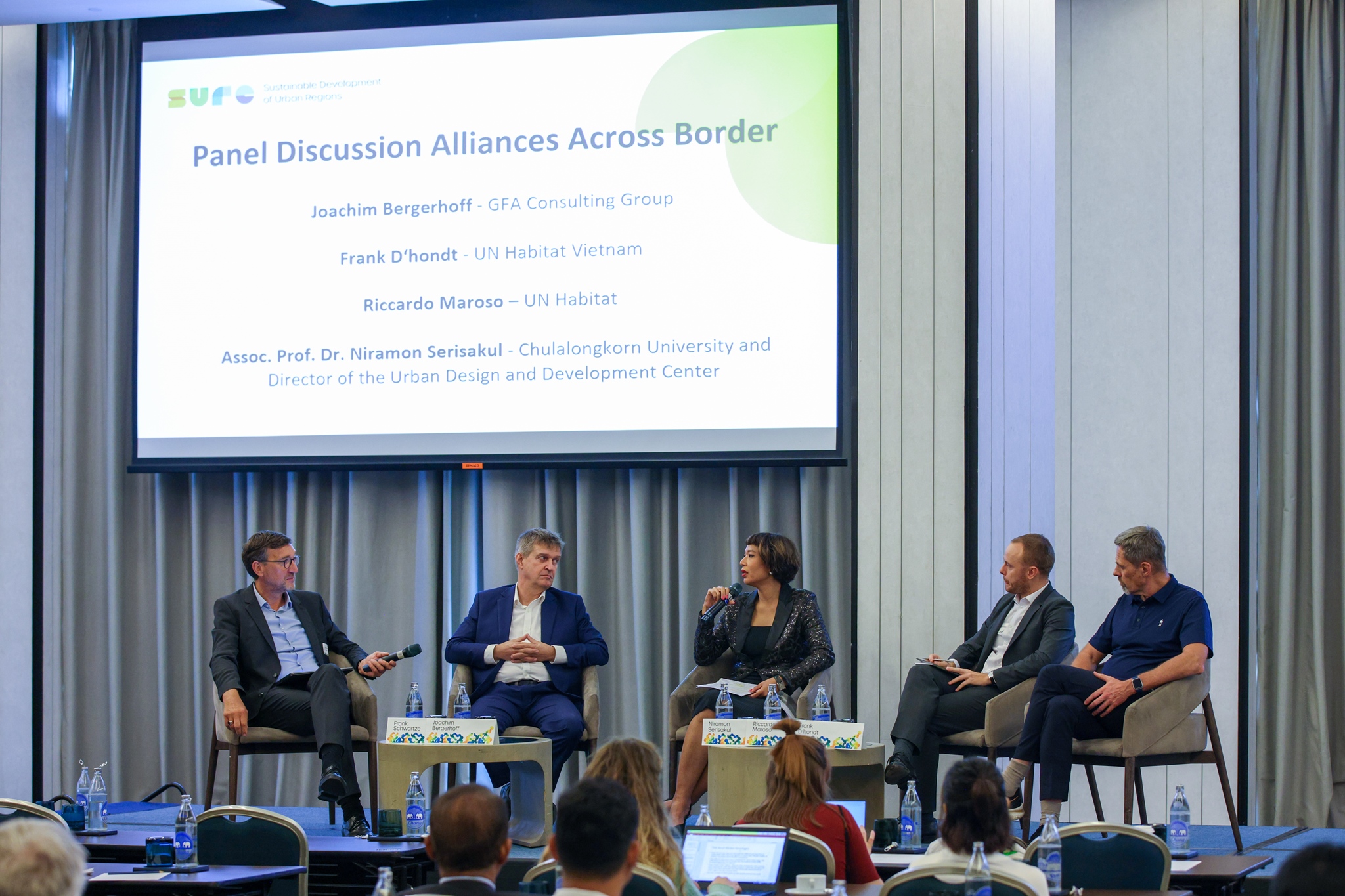 Das Ziel des Statusseminars vom 26. bis 27.09.2023 war es, die SURE-Verbundprojekte und die asiatischen Partnerorganisationen zusammenzubringen, um die Schwerpunktthemen und aktuellen Ergebnisse der Projekte zu diskutieren. Hierzu gehören unterschiedliche Living Labs, also Reallabore, die Wissenschaft und Gesellschaft zusammenbringen, beispielsweise im Projekt GreenCityLabHuế in Huế, Vietnam oder bei den Grundlagenstudien zu Wassermanagementkonzepten zur Schaffung widerstandsfähiger Städte, die im Rahmen von PolyUrbanWaters in Indonesien, Laos und Kambodscha durchgeführt wurden. Ein von IMECOGIP vorgestelltes geografisches Informationssystem (GIS) zur Bestimmung von Ökosystemleistungen in Städten, dessen Testgebiete in Shanghai und im Ruhrgebiet liegen, wurde diskutiert, um die Synergieeffekte der beiden Modellanwendungen herauszuarbeiten. Ebenso stellte das Projekt URA seinen entwickelten Raumbildansatz vor, um die Gemeinsamkeiten bei der Anwendung der Methodik in China sowie in Deutschland herauszuarbeiten. Auch unterschiedliche Strategien eines nachhaltigen Tourismus in Zentral Vietnam, einer der Themenschwerpunkte des emplement!-Projektes wurden vorgestellt.
