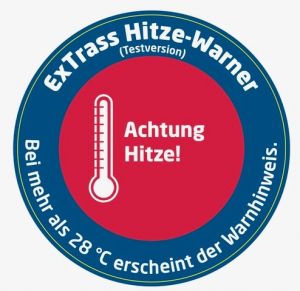 Der Hitze-Warn-Aufkleber warnt bei zu hohen Innenraumtemperaturen deutlich sichtbar vor der Hitze, sodass zum Beispiel ältere Menschen mit eingeschränkter Sehfähigkeit oder ambulante Pflegekräfte auf einen Blick erkennen, dass die Raumtemperatur gefährlich erhöht ist. Der Hitze-Warner besteht aus einem neun Zentimeter großen Aufkleber, der bei etwa 28 °C einen Warnhinweis in Rot zeigt.