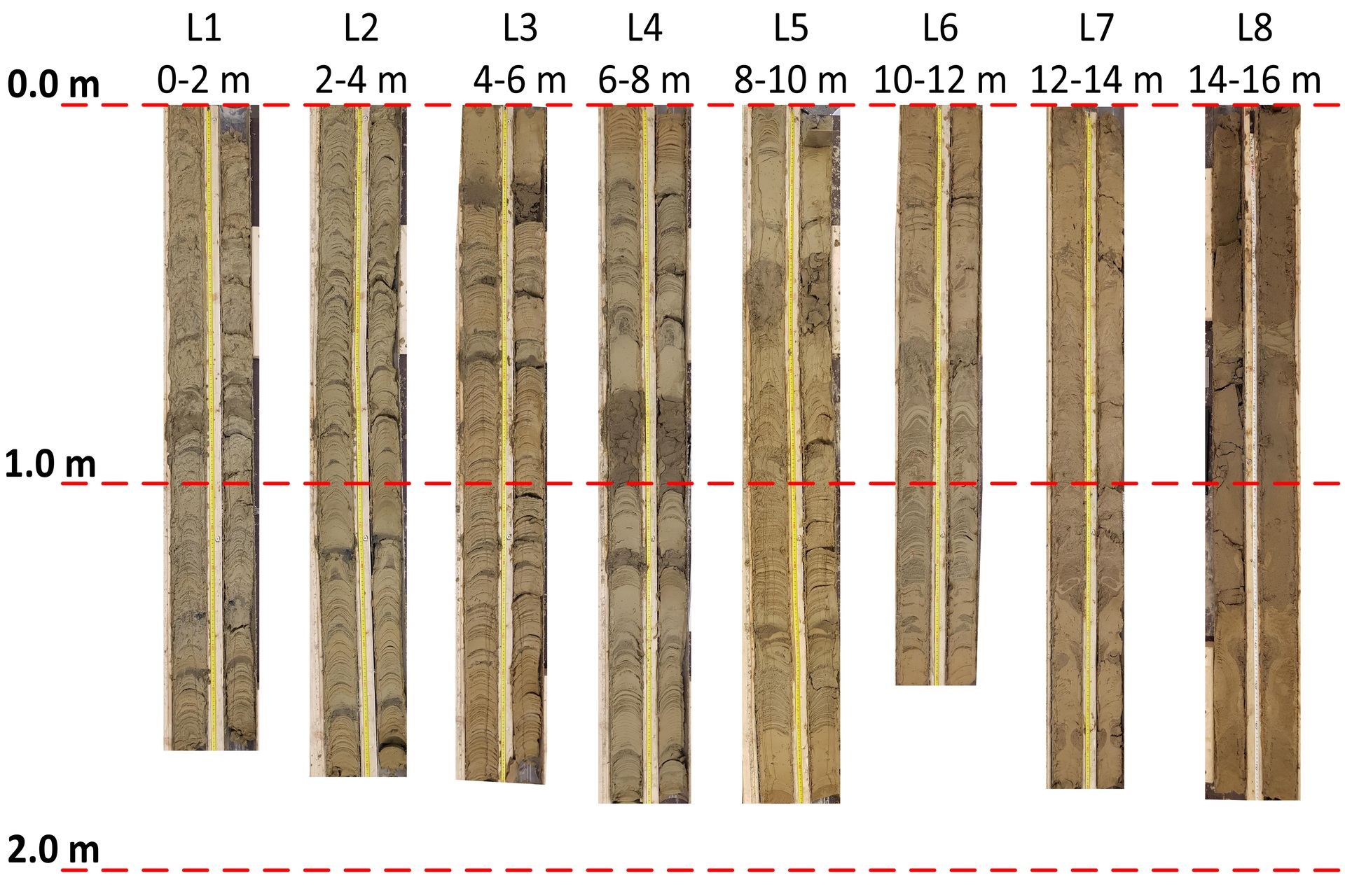 „Um die seismischen Echolotdaten und damit auch den Erfolg unserer Erkundungsmethode zu überprüfen, gleichen wir sie mit Sedimentproben ab, die wir mit Tiefenbohrungen gewinnen." Die Forschenden nutzen eine mobile Bohrplattform zur Entnahme von bis zu 20 Meter langen Sedimentkernen, die als Material für Laboruntersuchungen dienen. Die Sedimentkerne werden im Labor in Schichten unterteilt und ihre physikalischen und chemischen Eigenschaften bestimmt. So lassen sich zum Beispiel anhand der Korngrößen die Materialklassen – Kies, Sand, Schluff oder Ton – feststellen. Darauf basierend werden die die Schallgeschwindigkeiten der verschiedenen Sedimente berechnet, was eine Korrektur der seismischen Daten ermöglicht. Die Schichtinformationen und die seismischen Messungen nutzen die Projektpartner als Trainingsdaten für Algorithmen des Maschinellen Lernens (ML). ML-Methoden sollen helfen, Schallmuster zu identifizieren, die als Basis für eine automatisierte Bestimmung von Sedimentschichten in Baggerseen dienen können und so kostengünstigere Untersuchungen ermöglichen.