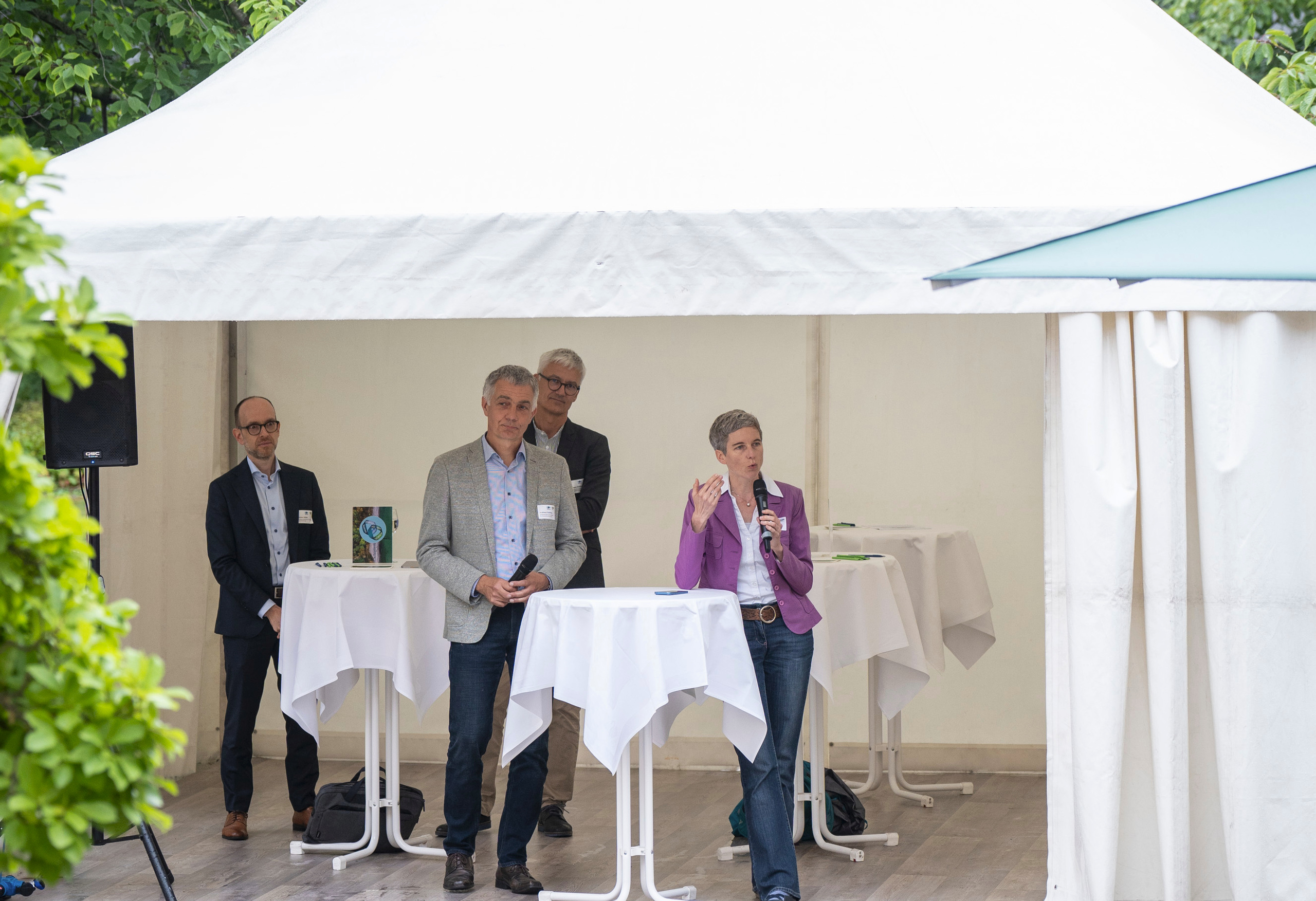 Wie kann Deutschland seine geplante Entnahme und Speicherung von CO2 aus unvermeidbaren Restemissionen sinnvoll gestalten? Diese Frage stand im Mittelpunkt des „Afterwork Insight", zu dem am 5. Juli die beiden Forschungsprogramme CDRmare und CDRterra des Bundesministeriums für Bildung und Forschung (BMBF) geladen hatten. Die Abkürzung CDR steht für „Carbon Dioxide Removal" (CO2-Entnahme). Die Wissenschaft forscht in den Programmen sowohl zu Methoden der CO2-Entnahme im Meer als auch an Land (siehe Infobox unten). Rund 100 Vertreterinnen und Vertreter aus Forschung, Politik, Zivilgesellschaft und von Fachverbänden kamen im Garten des Magnus-Hauses in Berlin zusammen. Das Hauptziel der Veranstaltung war es, die erlangten wissenschaftlichen Erkenntnisse an die Teilnehmenden, wie etwa Mitgliedern des Deutschen Bundestags, zu kommunizieren und eine Plattform für den Austausch unter den verschiedenen Akteuren zu schaffen.