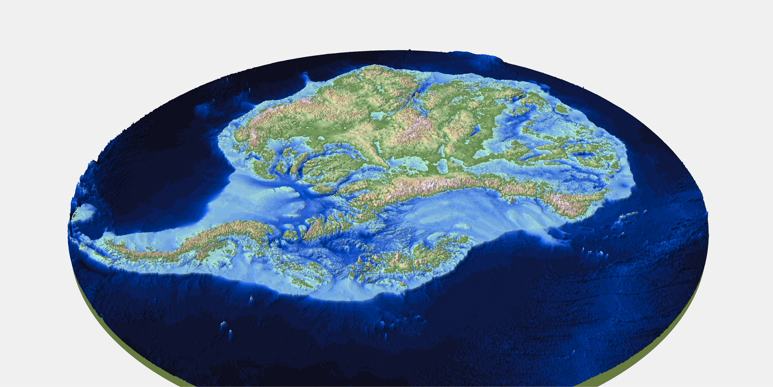 Auch die Umrisse der tiefen Täler sind besser dargestellt. Das gilt auch für die Stellen, an denen felsige Berge aus dem Eis herausragen. Die neuesten Satellitendaten haben auch die Höhe und Form des Eisschildes und die Dicke der schwimmenden Schelfeise, die sich am Rande des Kontinents über den Ozean schieben, genauer erfasst. Die Landschaft des Gesteinsbodens unter dem Eis der Antarktis wurde mit mehreren Technologien erfasst, darunter Radar, Schallwellen und Schwerkraftmessungen.