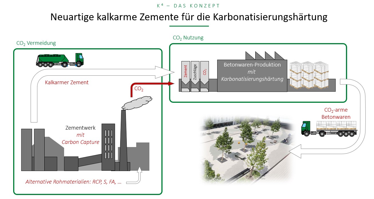 Das Projekt K4 wurde von August 2021 bis Juli 2025 vom BMFTR mit rund 2,6 Millionen Euro gefördert. Unter der Leitung von Heidelberg Materials AG waren zudem folgende Projektpartner beteiligt: cbm Centrum Baustoffe und Materialprüfung der Technischen Universität München; GeoZentrum Nordbayern, Lehrstuhl für Mineralogie der Friedrich-Alexander-Universität Erlangen-Nürnberg; IBU-tec advanced materials AG; Kraft Curing Systems GmbH; Lithonplus GmbH & Co. KG.