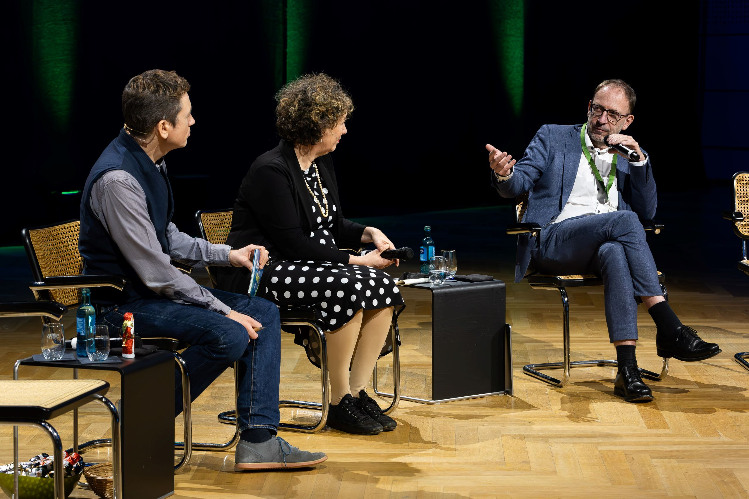 Svea Heinemann (ICLEI), Haris Piplas (ETH Zürich, Drees& Sommer) und Nilsson Samuelsson (Landeshauptstadt Dresden) bauten mit ihren Impulsen eine Brücke zwischen visionären Konzepten und ihrer praktischen Umsetzung vor Ort. Dazu stellten sie europäische Policies, Konzepte und Umsetzungen vor, die sich unter anderem am Neuen Europäischen Bauhaus orientieren. Wie sieht eine klimaangepasste und zugleich ästhetische und lebenswerte Stadt der Zukunft aus, die auch soziotechnische Entwicklungen intelligent und alltagsnah integriert? Haris Piplas zeigte unter anderem, wie das New European Bauhaus-Lab als Kompetenzplattform dienen kann, um Quartiere zukunftsfähig zu gestalten. Nilsson Samuelsson brachte die nationale Perspektive der Umsetzungsebene ein und berichtete aus Sicht der Landeshauptstadt Dresden. Wie integriert Dresden die Ideen in ihre nachhaltigen Stadtentwicklungskonzepte, wie wird die gebaute Umwelt geformt und welche Erfolge und Herausforderungen ergeben sich beim Planen und Umsetzen? Die Leitfragen der anschließenden Diskussion lauteten: Wie sieht das Spannungsfeld zwischen visionären Konzepten und praktischer Umsetzung vor Ort aus? Welche Planungsinstrumente und Hebel brauchen wir, um die visionären Konzepte vor Ort in der Realität umzusetzen? Wie gehen mir mit soziotechnischen Innovationen um?