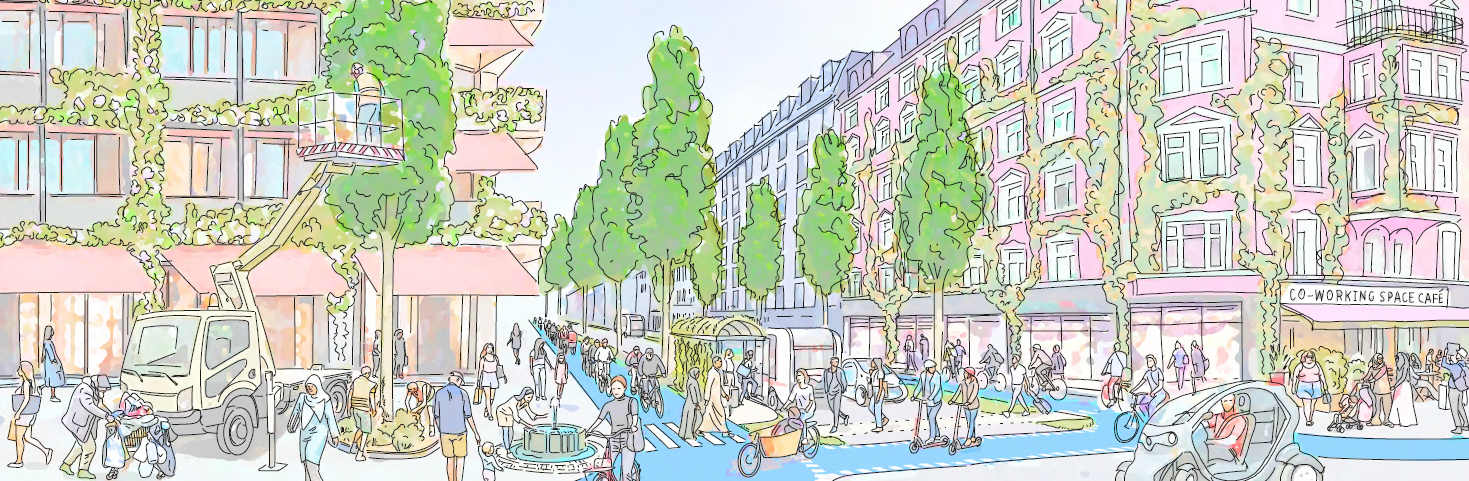 Die Stadt München steht wie viele Großstädte vor großen Herausforderungen: Die Folgen des Klimawandels und von Extremwetterereignissen, insbesondere Hitzewellen und Starkregen, werden immer spürbarer. Es bedarf dringend wirksamer Maßnahmen zur Anpassung an den Klimawandel. Hier kann „Grüne Infrastruktur“, wie zum Beispiel Parks, urbane Gärten, grüne Dächer, begrünte Innenhöfe oder Fassadenbegrünungen, einen wesentlichen Beitrag leisten. Beispielsweise kühlen Bäume durch Verschattung und Verdunstung ihre Umgebung wie eine natürliche Klimaanlage und in Grünflächen versickert Regenwasser, was Überschwemmungen vorbeugt.
