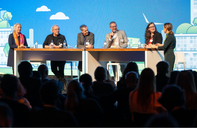 Suffizienz wurde auch von den anderen Panel-Teilnehmenden als wichtiges Thema der Nachhaltigkeitstransformation in Städten identifiziert. Ilse Helbrecht wies auf den enormen Flächenverbrauch in Deutschland hin. Andrea Bitter sah ein großes Potential zur Lösung der Wohnungsnot darin, die 10% älteren Bewohnenden der 17 Millionen Einfamilienhäuser in Deutschland zu einem Wohnungswechsel bzw. -tausch zu animieren.
