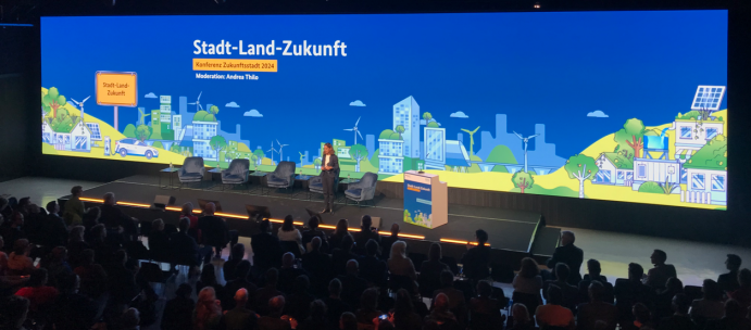 Die Tagung „Stadt-Land-Zukunft – Konferenz Zukunftsstadt 2024“ des Bundesministeriums für Bildung und Forschung (BMBF) fand am 13. und 14. März 2024 in der „Alten Münze“ in Berlin statt. Rund 370 Expertinnen und Experten aus den Bereichen Forschung und Wissenschaft und der kommunalen Verwaltung diskutierten die Ergebnisse aus mehreren Jahren Forschung zur Stadtentwicklung und zur Mobilitätforschung für mehr Nachhaltigkeit. Darüber hinaus ging es um die Fragestellung, wie die gewonnen Erkenntnisse in der Praxis wirken können. Wie kommen wir vom Wissen zum Handeln?