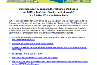 - Workshop 1: Lebendige und produktive Innenstädte und Stadtquartiere – Erkenntnisse und Wirkungen der Zukunftsstadtforschung