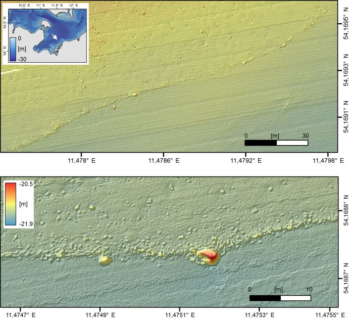 2021 entdeckte ein Team von Meeresgeologen eine fast einen Kilometer lange Steinreihe am Grund der Mecklenburger Bucht. Die Fundstelle mit rund 1.500 Steinen liegt etwa 10 Kilometer vor Rerik. Ein Team aus Forschenden verschiedener Disziplinen kommt nun zu dem Schluss, dass Eiszeitjäger vor etwa 11.000 Jahren diese Struktur errichtet haben, um Rentiere zu jagen. Ihre Ergebnisse stellte die Gruppe jetzt in der Fachzeitschrift Proceedings of the National Academy of Sciences (PNAS) vor.
