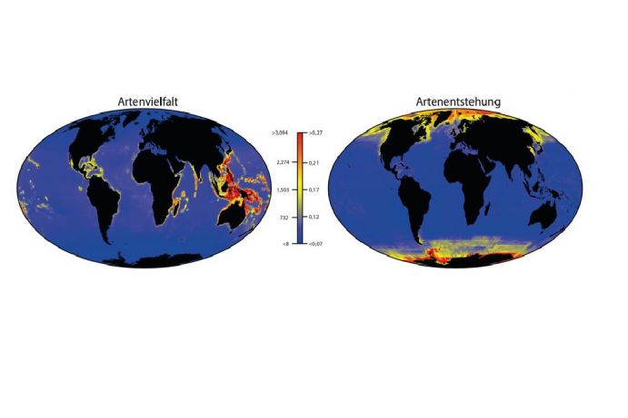 Warme tropische Küstenmeere sind die Heimat von bis zu 1000-mal mehr Arten von Fischen als die kalten Polarmeere. Die Abnahme der Artenzahl von den Tropen zu den Polen ist in der Biodiversitätsforschung schon lange bekannt und wird in den meisten Lehrbüchern mit einer höheren Entstehungsrate neuer Arten in warmen Korallenriffen, Lagunen oder Mangrovenwäldern erklärt. Eine neue Studie hat jetzt aber herausgefunden, dass in den letzten Millionen Jahren die Entstehung neuer Arten in kalten Gewässern in hohen Breitengraden etwa zweimal höher war als in den Tropen. Die Ergebnisse werden am 5. Juli in der internationalen Fachzeitschrift Nature veröffentlicht.