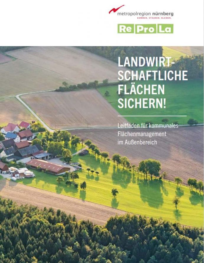 Der Umgang mit landwirtschaftlichen Flächen steht aktuell jedoch kaum im Fokus von Kommunen. Im Rahmen des Bundesforschungsprojektes „ReProLa" (regionalproduktspezifisches Landmanagement) wurde daher ein Leitfaden entwickelt. „Dieser Leitfaden ist deutschlandweit einzigartig – so zeigt er gute Beispiele aus der Metropolregion, wo Kommunen bereits heute sparsam mit landwirtschaftlichen Flächen umgehen. Das ist ein wichtiger Schritt zu einem gesellschaftlichen Umdenken. Wir müssen uns endlich klarmachen, was der Verlust von Landwirtschaftsfläche be-deutet. Ohne Flächen werden wir in Zukunft keine regionalen Lebensmittel mehr produzieren können", fasst Landrat Dr. Hermann Ulm zusammen.