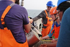 So nah Gogina auch am Meer arbeitet – für ihre Forschung ist das immer noch nicht nah genug. Um den Stofftransport in der Ostsee zu erforschen, müssen die Meeresforscher Proben in den verschiedensten Meeresgebieten nehmen. Dafür fahren sie mit modernsten Forschungsschiffen aufs Meer hinaus. Die junge Forscherin war schon auf mehr als 20 Ausfahrten dabei – auf der MERIAN, der ELISABETH MANN BORGESE, ALKOR, POSEIDON, PROFESSOR PENCK und einigen russischen Schiffen. Mit ozeanografischen Geräten werden die Leitfähigkeit, Sauerstoffgehalt, Temperatur und Wassertiefe sowie andere Parameter der bodennahen Wassersäule erfasst. Mit verschiedenen Greifgeräten wie zum Beispiel dem Van Veen-Greifer, Kastengreifer oder Multicorer nehmen die Forscher dann Sedimentproben, die auch die tierischen Bodenbewohner wie Herzmuscheln, Miesmuscheln, Seesterne und Seepocken mit ans Tageslicht befördern.