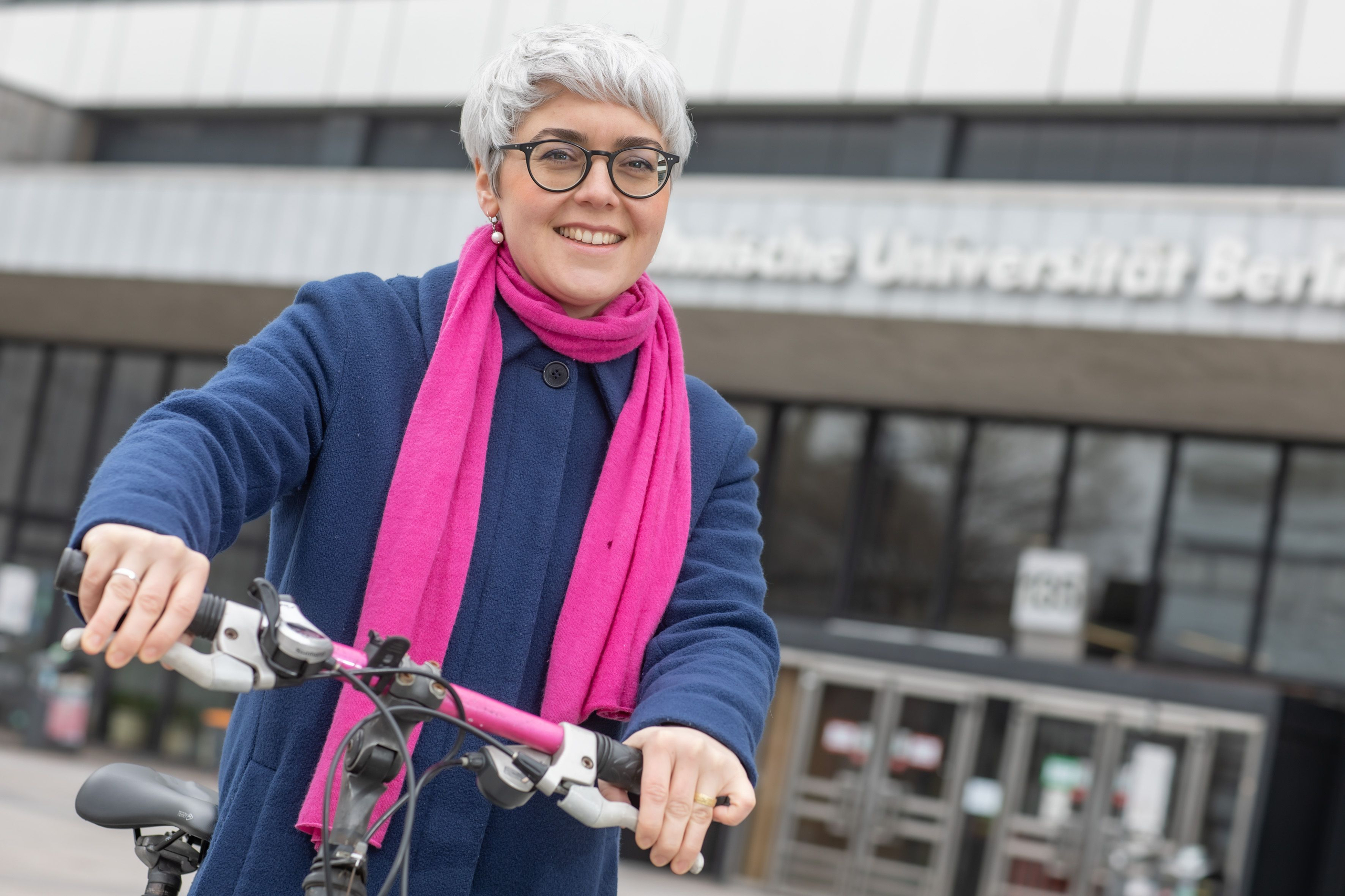 Zur Arbeit fährt Sophia Becker mit dem Fahrrad an die Technische Universität Berlin. Dort erforscht sie am Fachgebiet Nachhaltige Mobilität und transdisziplinäre Forschungsmethoden, wie klimafreundliche Mobilität in Deutschland gestaltet werden kann.