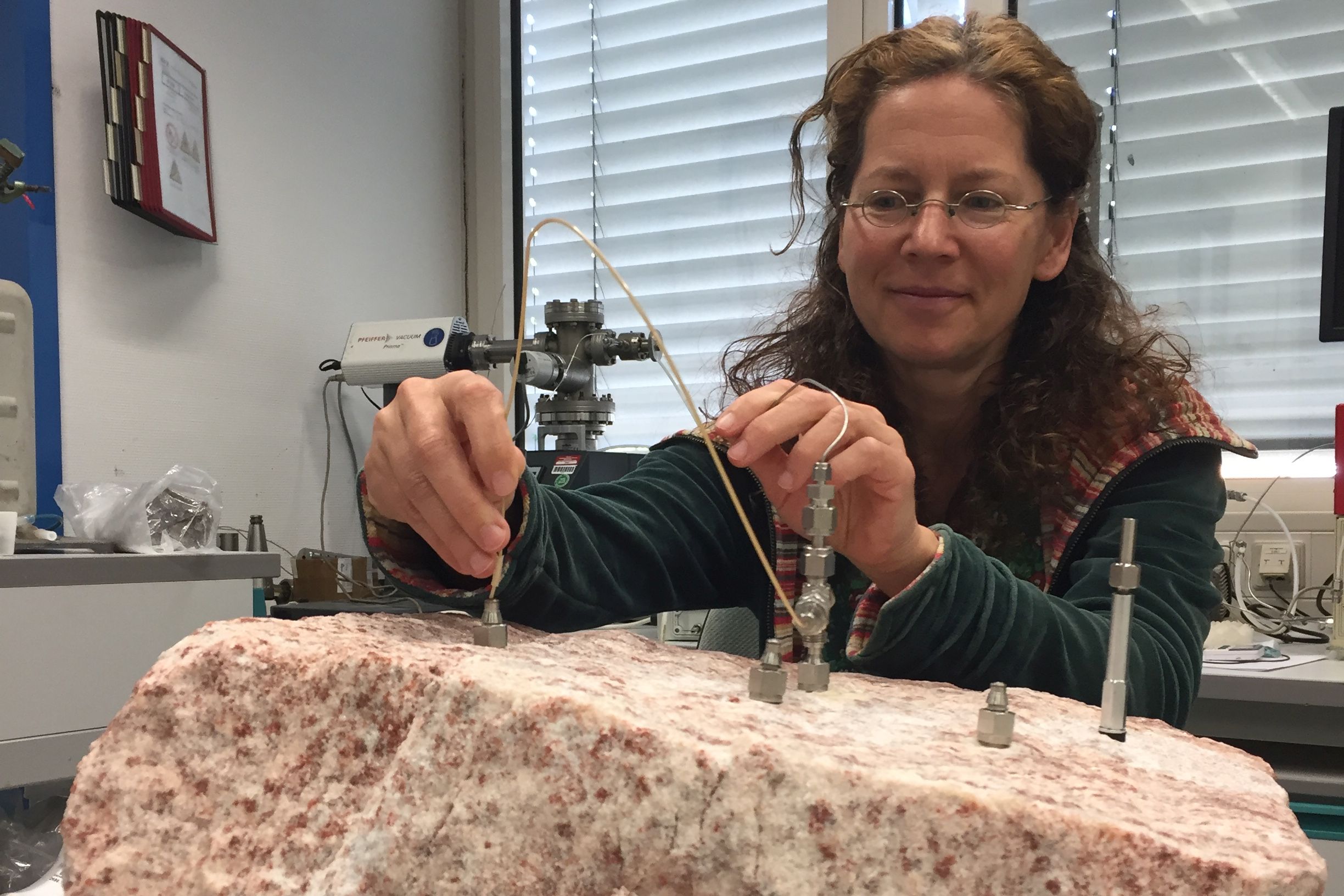 Bettina Strauch misst sowohl im Bergwerksstollen als auch im Labor. Im aktiven Salzbergwerk bei Fulda untersucht sie mit dem Projektteam, wie das Wechselspiel von Gas, Wasser und Salz zwischen Festgestein und Hohlraum konkret verläuft. Von winzig kleinen bis sehr großvolumigen Anlagen wiederholt das Team vergleichende Versuche im Labor und im Feld und ergänzt sie um numerische Simulationen und Modelle.