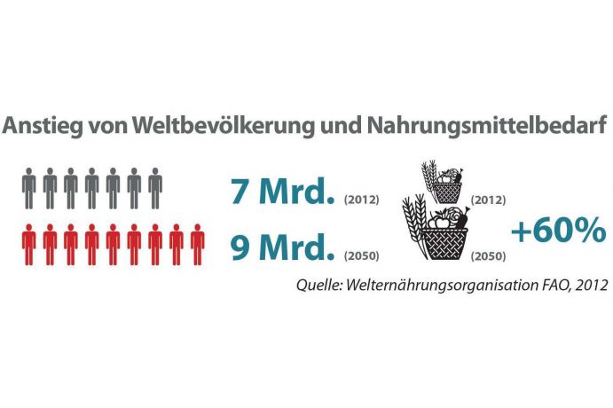 Anstieg von Weltbevölkerung und Nahrungsmittelbedarf bis 2050