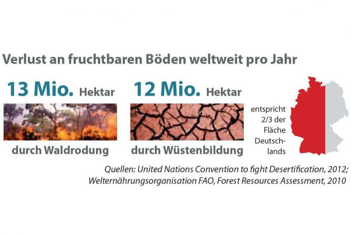Verlust an fruchtbaren Böden weltweit pro Jahr