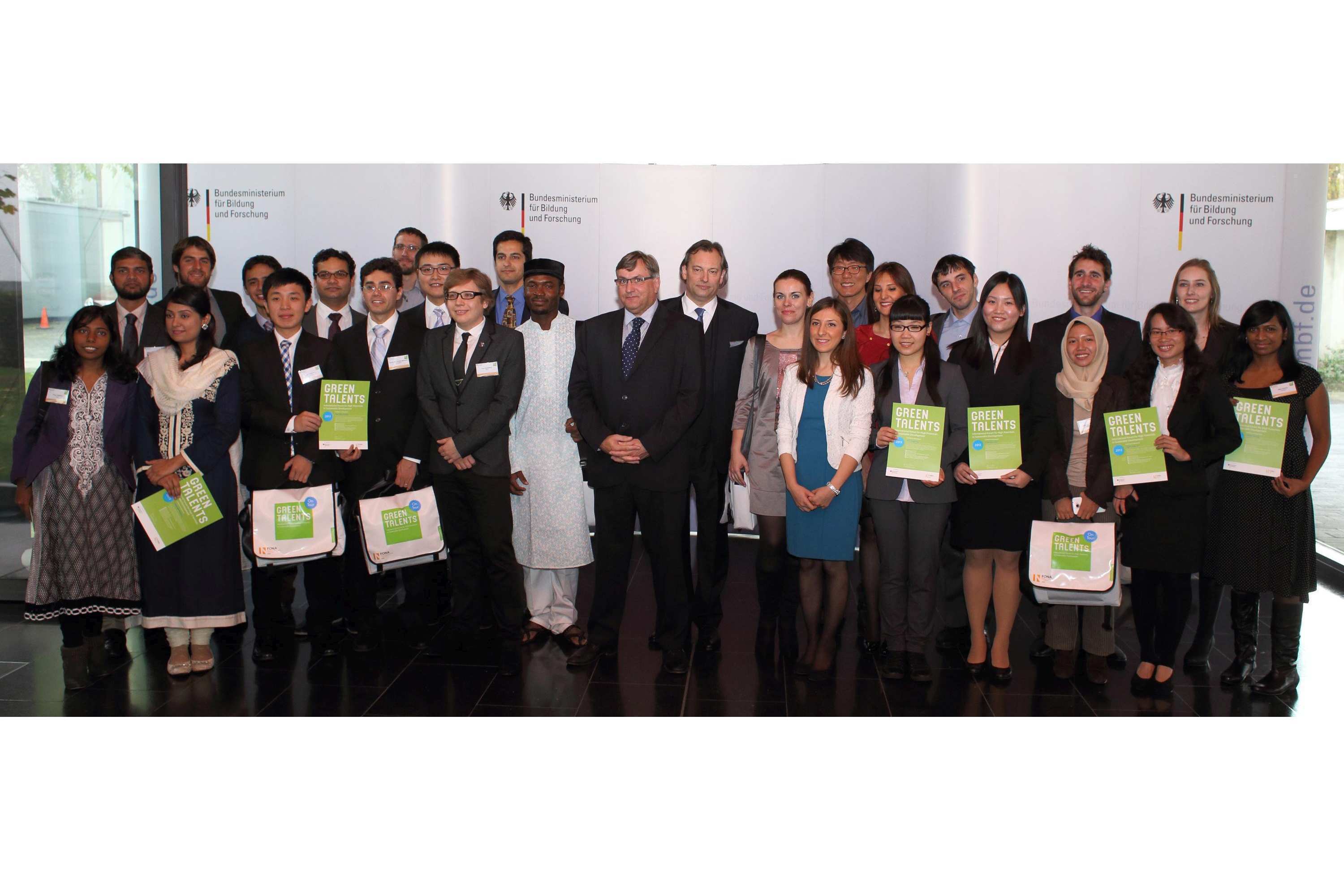 Am 08.11.2013 verlieh Herr MinDirig Wilfried Kraus, Leiter der Unterabteilung 72 „Nachhaltigkeit, Klima, Energie“ im Bundesministerium für Bildung und Forschung (BMBF), 25 jungen Nachwuchswissenschaftlern die Green Talents Auszeichnung. Die Zeremonie fand im historischen Gartenhaus des BMBF in Berlin statt. Das "Green Talents - International Forum for High Potentials in Sustainable Development" zeichnet jedes Jahr Nachwuchswissenschaftler aus dem Bereich der Nachhaltigkeitsforschung aus. Der Wettbewerb wurde im Auftrag des BMBF vom Projektträger des Deutschen Zentrums für Luft- und Raumfahrt in diesem Jahr bereits zum fünften Mal organisiert und durchgeführt. Über 430 Nachwuchswissenschaftler aus 80 Ländern reichten ihre Bewerbungen ein, von denen 25 „Green Talents“ von einer Jury ausgewählt wurden.