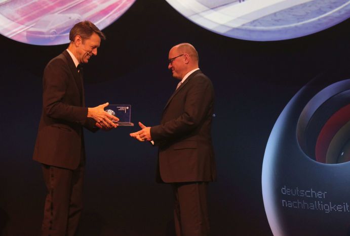 Im Rahmen des 8. Deutschen Nachhaltigkeitstages überreichte Dr. Georg Schütte, Staatssekretär im Bundesforschungsministerium, am Freitag 27. November 2015 in Düsseldorf den Deutschen Nachhaltigkeitspreis Forschung an Herrn Prof. Klaus Raps, Stellvertretender Vorstand des C³- Carbon Concrete Composite e.V.