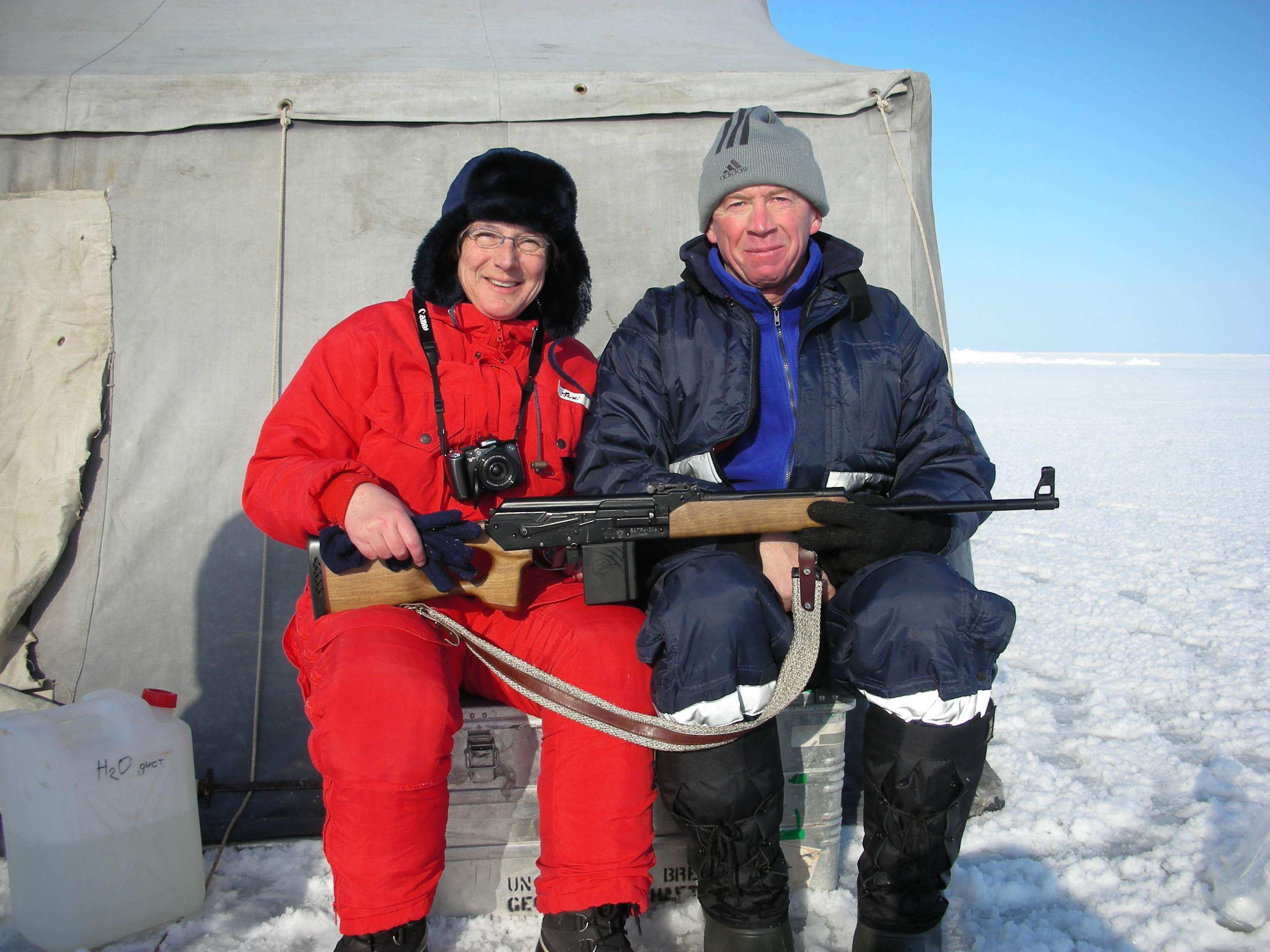 Expeditionsleiterin Heidemarie Kassens und Viktor Vizitov sind zufrieden mit den abgeschlossenen Stationsarbeiten. Viktor Vizitov, stellvertretender Direktor des Staatlichen Instituts für Arktis- und Antarktisforschung in Sankt Petersburg, begleitet die Forschungsarbeiten tatkräftig, unter anderem auch als Eisbärenwache. Im Rahmen der deutsch-russischen Kooperation in der Meeres- und Polarforschung fördert das Bundesministerium für Bildung und Forschung Forschungsprojekte, die sich mit den Auswirkungen des Klimawandels in der Arktis befassen. Dr. Heidemarie Kassens forscht seit vielen Jahren in der Arktis und wurde für Ihre herausragende wissenschaftliche Arbeit mit dem Bundesverdienstkreuz geehrt. Hamburg /St. Petersburg 2017