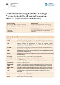 Verbundsteckbriefe der Förderbekanntmachung BioProFi