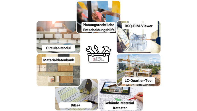Ein zentraler Meilenstein war die Entwicklung des "Werkzeugkastens Ressourceneffizienz" im ersten Projektabschnitt RessStadtQuartier 1. Hier wurde ein innovatives Konzept geschaffen, das es ermöglicht, verschiedene Daten und Analyseverfahren (beispielsweise Life Cycle Assesment, Building Information Modelling) zu verknüpfen und diese in den Planungsprozess einzubinden.