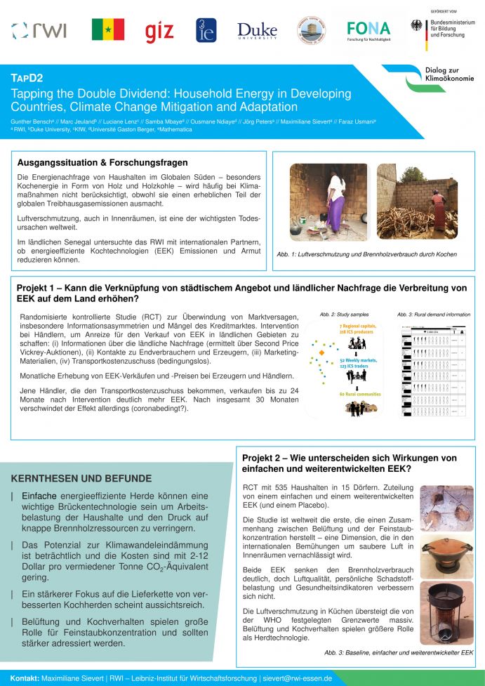 Tap D2 – Haushaltsenergie, Klimawandelanpassung und Emissionsreduzierung in Entwicklungsländern: ein Potential für doppelte Dividenden?
