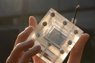 Ziel des Forschungsprojekts H2-Demo unter Koordination des Fraunhofer Instituts für Solare Energiesysteme ISE ist es, erstmals größere Demonstratoren für die direkte solare Wasserstofferzeugung herzustellen. Hierunter versteht man die Absorption des Sonnenlichts in einer Halbeiterstruktur, welche eine ausreichend große Photospannung (> 1.6 Volt) generiert, um Wasser direkt in Wasserstoff und Sauerstoff zu zerlegen.