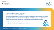 - aqua3: Technische Ausgestaltung und digital-gestützte Bewirtschaftung von 3 qualitätsgesicherten Wasserkreisläufen zur langfristigen Sicherstellung der städtischen Wasserversorgung als Beitrag zur Entwicklung klimaangepasster Städte