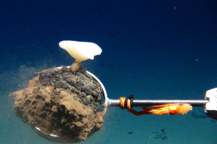 Schon in den 1970er Jahren gab es erste Pläne zum Abbau von Manganknollen aus der Tiefsee, die jedoch nie über Pilotversuche hinaus kamen. Manganknollen sind kugel- oder blumenkohlförmige Erzknollen, die meist in Tiefen unterhalb von 4000 Metern auf den großen Tiefseeebenen liegen. Sie bestehen nicht nur aus dem namengebenden Mangan, sondern enthalten auch Eisen sowie begehrte Metalle wie Kupfer, Kobalt oder Nickel. „Der technische Aufwand, sie aus der Tiefsee zu gewinnen, ist immer noch extrem hoch. Aber die Nachfrage nach Metallen ist hoch und wird bei einer wachsenden Weltbevölkerung weiter steigen, betont Dr. Haeckel, „wir sollten vorbereitet sein, wenn ein Staat mit der Erzgewinnung in der Tiefsee beginnen will.