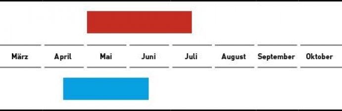 Flugzeit: Mitten im Sommer, von Juli bis Ende September, kann die Hosenbiene beobachtet werden. Männchen erscheinen wenige Tage vor den Weibchen.