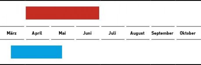 Flugzeit: Die Rote Mauerbiene ist eine der ersten, die im Frühjahr fliegt. Männchen schlüpfen wenige Tage bis Wochen vor den Weibchen und warten an den Nesteingängen auf die schlüpfenden Geschlechtspartner.
