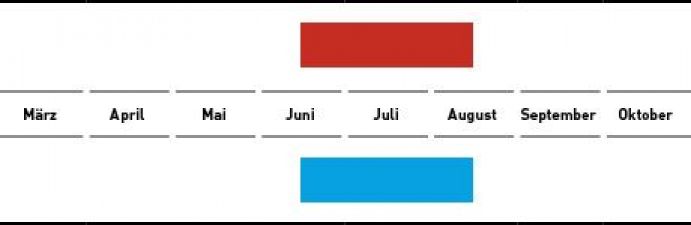 Flugzeit: Männchen und Weibchen dieser Art fliegen gleichzeitig von Mitte Juni bis Mitte August.
