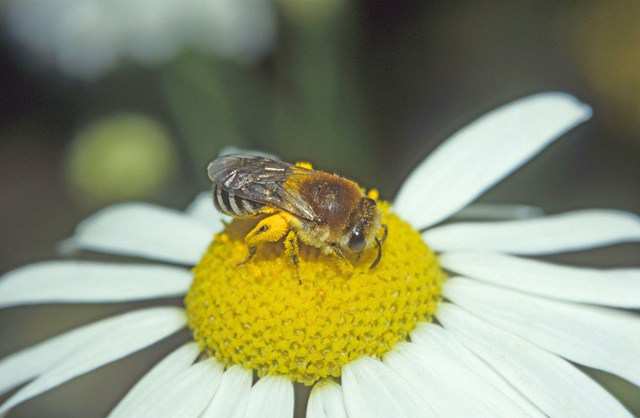 Ernährung: Die Biene gehört zu den wählerischen Pollensammlern; sie bevorzugt Korbblütler wie z.B. Rainfarn, Mutterkraut, Kamille, Schafgarbe, Geiskraut und Strohblume.