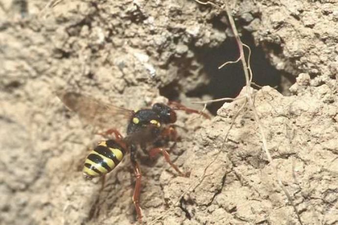 Nist- und Lebensweise: Wespenbienen zeichnen sich durch eine parasitische Lebensweise aus. Sie legen selbst keine Nester an, sondern legen ihre Eier in den Nestern verschiedener Wirtsbienen ab. Diese wiederum nisten im Boden. Für eine erfolgreiche Fortpflanzung sind Wespenbienen auf die Existenz der Wirtsbienen angewiesen.