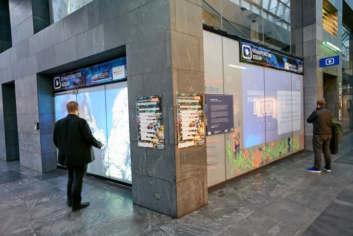 Reproductions of deep-sea landscapes in a diorama are matched by models of underwater technologies used by German marine research institutions. Visitors can gather background information on the geology and biology of the deep sea with the help of interactive 3D visualization as well as take a virtual flight through underwater landscapes. The scenarios are based on real data and are accurately reflected in the underwater world portrayed in the diorama.